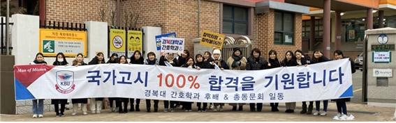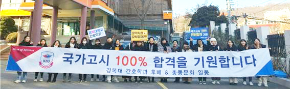 ¿ÃÇØ·Î 60¹øÂ°·Î ½ÃÇàµÈ °£È£»ç ±¹°¡°í½Ã¿¡´Â ÃÑ 330¸íÀÇ 4Çгâ ÇлýµéÀ» ÀÀ¿øÇϱâ À§ÇØ °£È£Çаú Çлýȸ¿Í µ¿¹®È¸¿¡¼ ¼ÒÁ¤ÀÇ °£½Ä, ÀÀ¿øÀÇ ¿±¼¸¦ ÁغñÇÏ¿´´Ù. °æº¹´ëÇб³ °£È£Çаú Çлýȸ¿Í ±èÁ¤¼ö ±³¼ö´Ô, ±èÇýÁø ±³¼ö´Ô, ÁÖ¹Ì°æ ±³¼ö´Ô, ¹Úº¸¿µ ±³¼ö´Ô, ¿À¼ø¿µ ±³¼ö´Ô²²¼ 4Çгâ Çлýµé¿¡°Ô ÈûÀ» ÁÖ°íÀÚ ±¤ÀåÁßÇб³¿¡ ¸ð¿´´Ù.