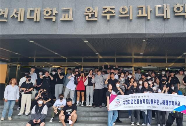 °æº¹´ëÇб³ ÀÛ¾÷Ä¡·á°ú(ÇаúÀå À¯Âù¿í)´Â 6¿ù 22ÀÏ ¿¬¼¼´ë ¿øÁÖÀǰú´ëÇб³¿¡¼ ÀÛ¾÷Ä¡·á Àü°ø±âÃÊ¿ª·® °È ÇÁ·Î±×·¥ÀÇ ÀÏȯÀ¸·Î 1Çгâ ÀçÇлý 68¸íÀ» ´ë»óÀ¸·Î »çÃ¼ÇØºÎÇÐ ÇöÀå½Ç½ÀÀ» ÁøÇàÇß´Ù.